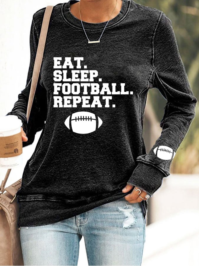 🔥🔥Women's Eat Sleep Football Repeat Print Casual Sweatshirt