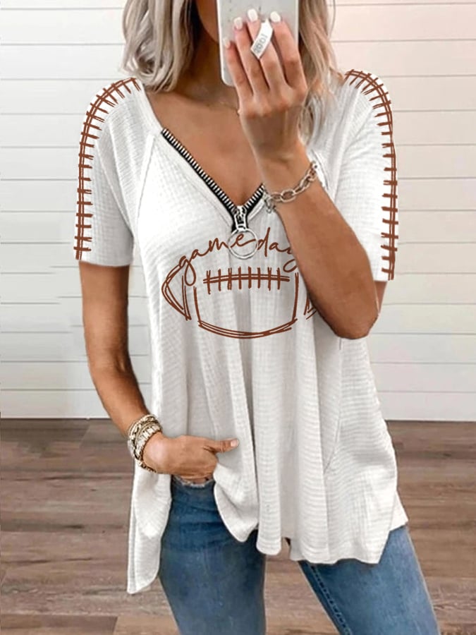 🔥🔥Women's Football Lover Gameday Zipper V-Neck Top