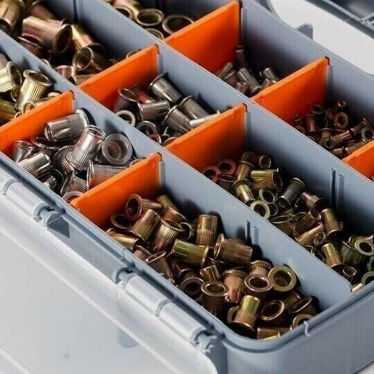 • American Standard Thread Rivet Nuts 500 pcs: For Metric M3(40pcs); M4(40pcs); M5(40pcs); M6(40pcs); M8(40pcs); M10(40pcs); M12(40pcs);SAE 8-32(25pcs),10-24(25pcs), 1/4-20(25pcs), 5/16-18(25pcs), 3/8-16(25pcs),1/2-13(25pcs);