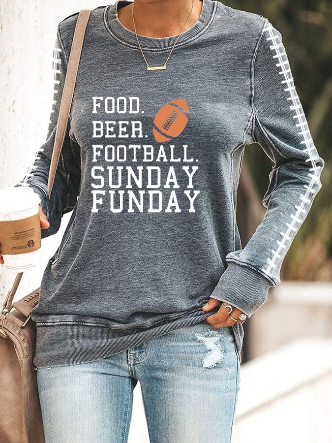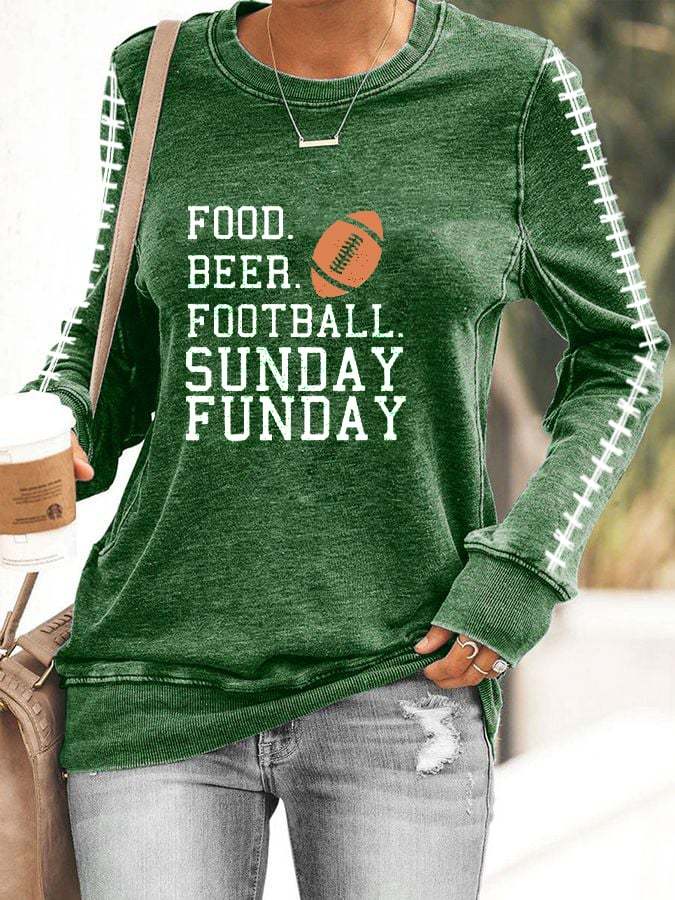 Women's Food, Beer, Football,Sunday,Funday Printed Casual Sweatshirt
