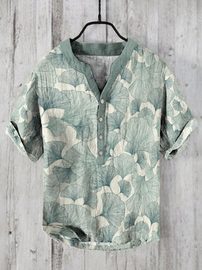 Japanese Ink Painting Of Ginkgo Art Causal Linen Blend Cozy Shirt