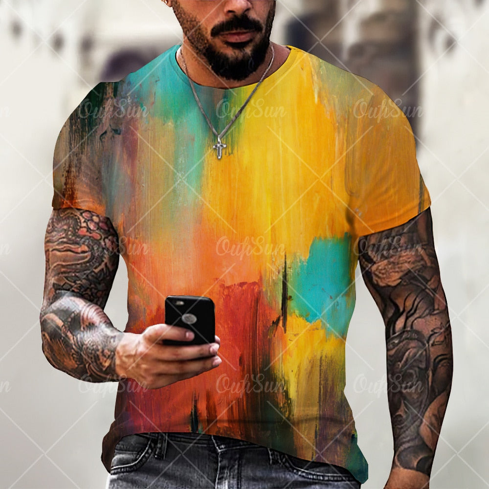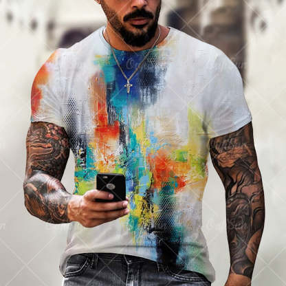 Oversized Men T-Shirt Mosaic Print Fashion T Shirt Men Tops Tees Summer Short Sleeved Casual Loose T-Shirts Men Clothing XXS-6XL