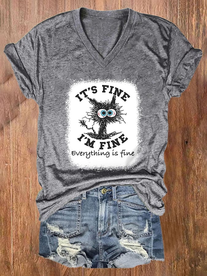 V-neck It's Fine I'm Fine Everything Is Fine Print T-Shirt