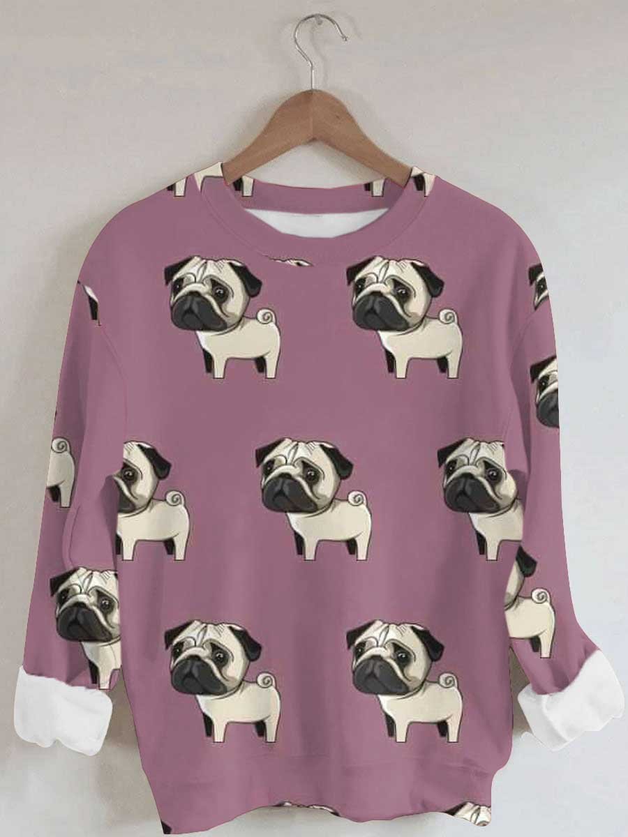Women's Dog Print Long Sleeve Round Neck Sweatshirt