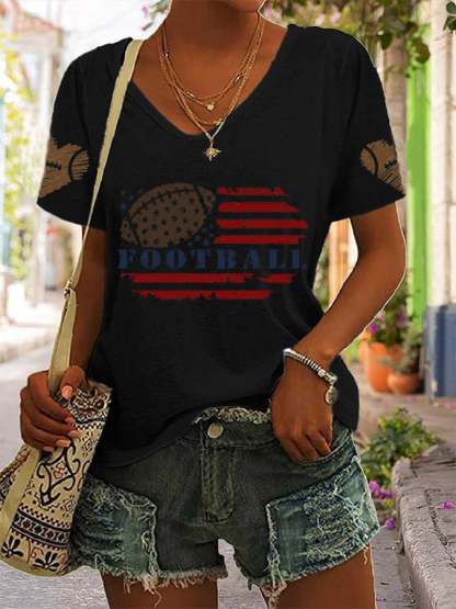 🔥🔥Women's American Football Flag Football Lover Print V Neck T-shirt