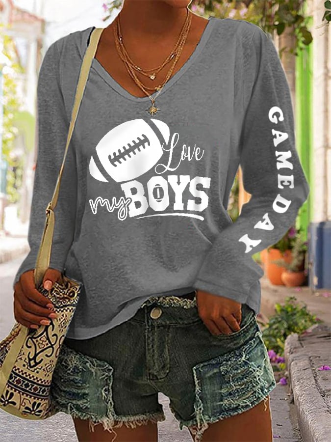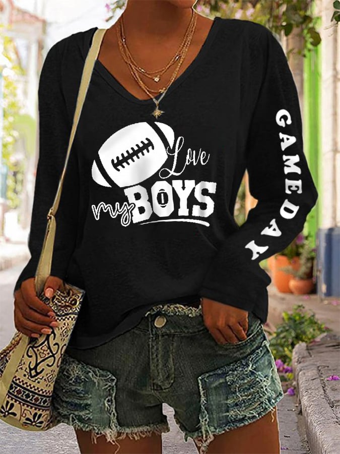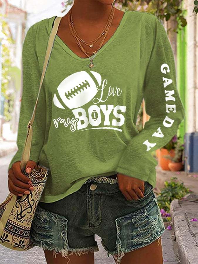 🔥🔥Women's Love My Boys Gameday Football Lover Casual Long-Sleeve T-Shirt