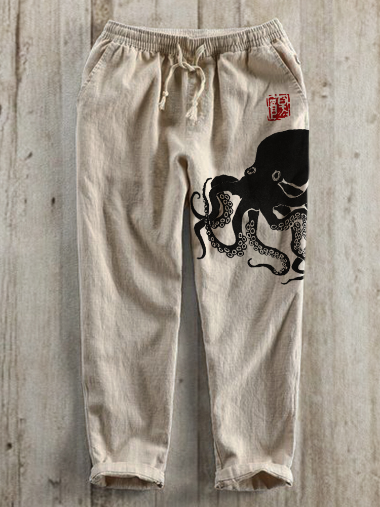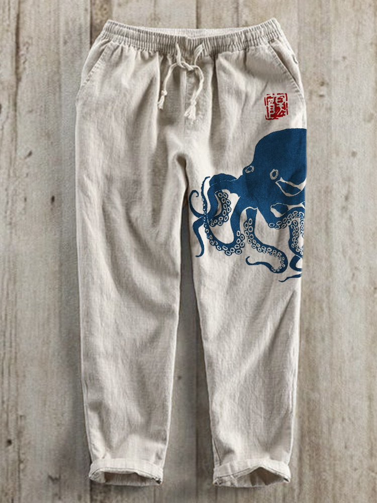 Octopus Japanese Lino Art Linen Blend Casual Pants
