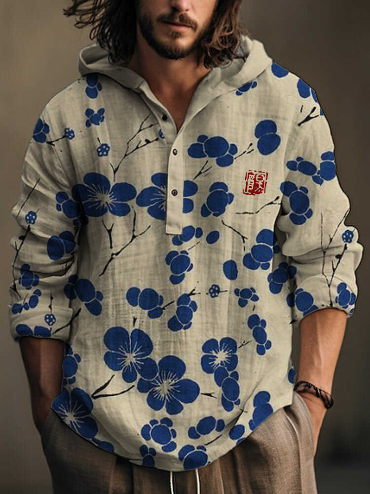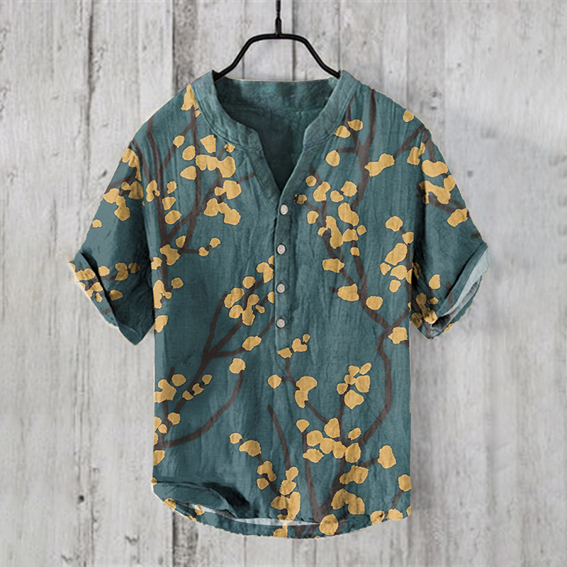 Men's Vintage Japanese Art Plum Blossom Casual Linen Blend Shirt