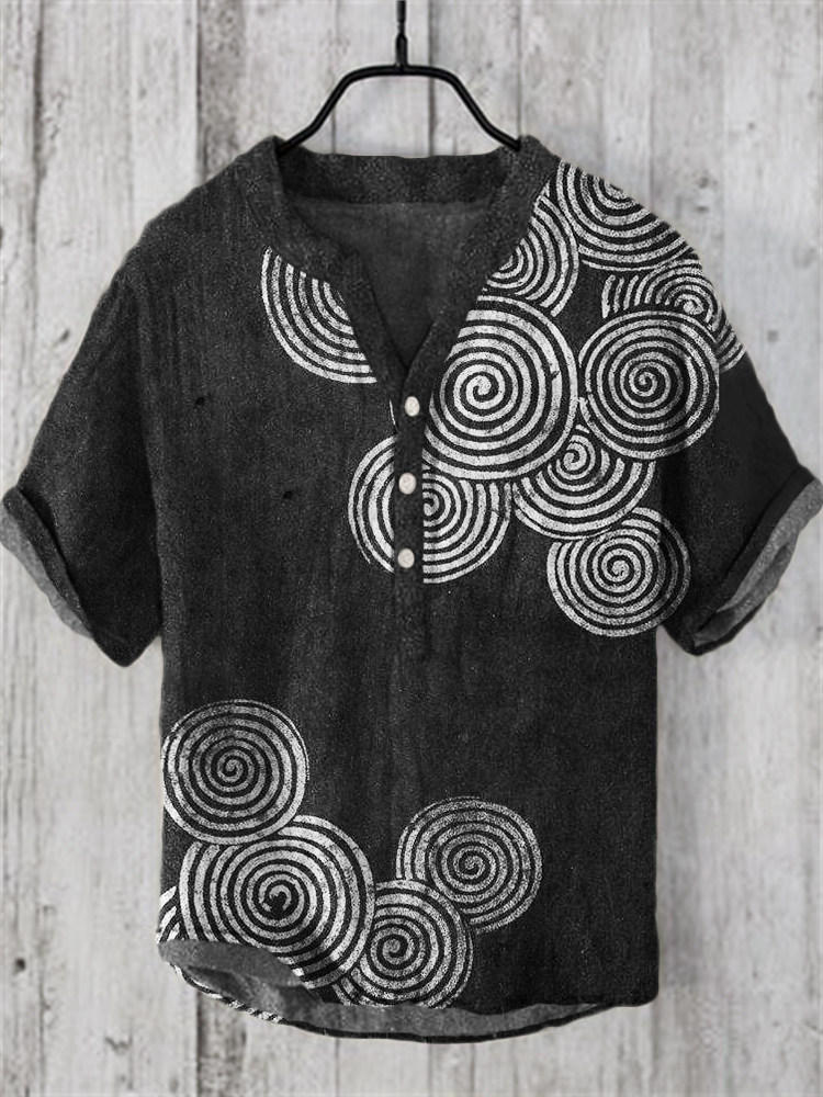 Men's Vintage Japanese Art V Neck Casual Linen Blend Shirt