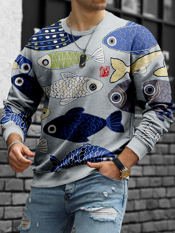 Vintage Fish Japanese Art Crew Neck Comfy Sweatshirt