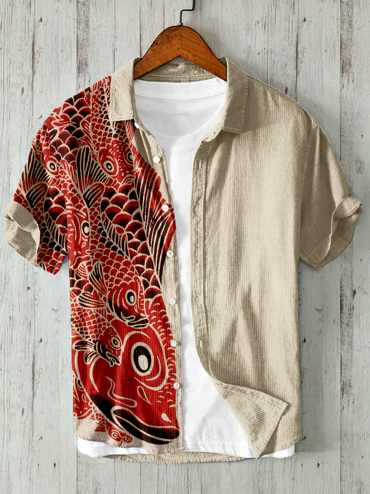 Fish Japanese Lino Art Vintage Linen Blend Shirt