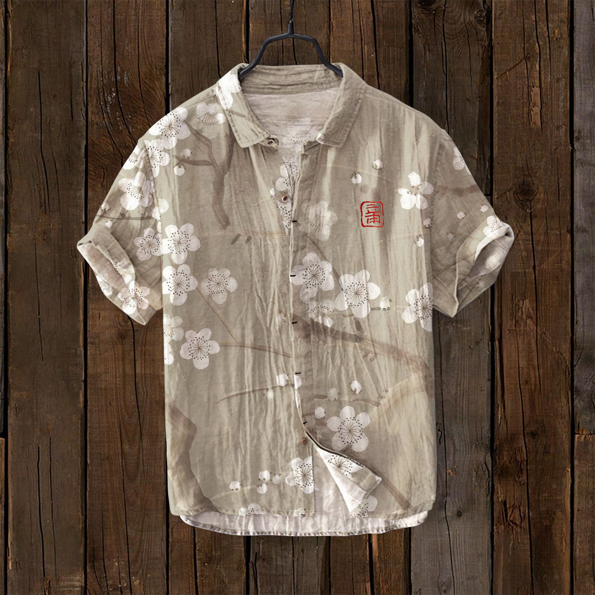 Plum Blossom Japanese Pattern Linen Blend Shirt
