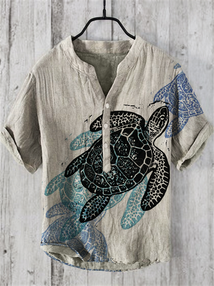 Sea Turtles Japanese Lino Art Linen Blend Shirt