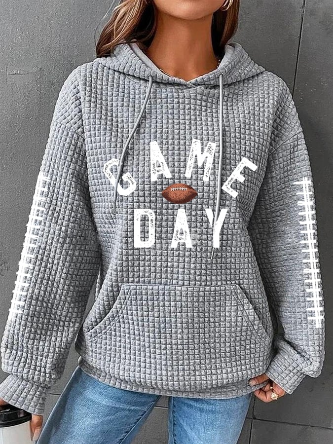Women's Gameday Football Lover Casual Waffle Hoodie