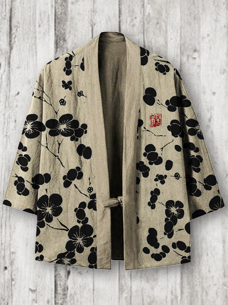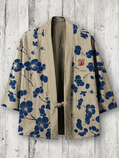 Cherry Blossom Japanese Lino Art Linen Blend Kimono Cardigan
