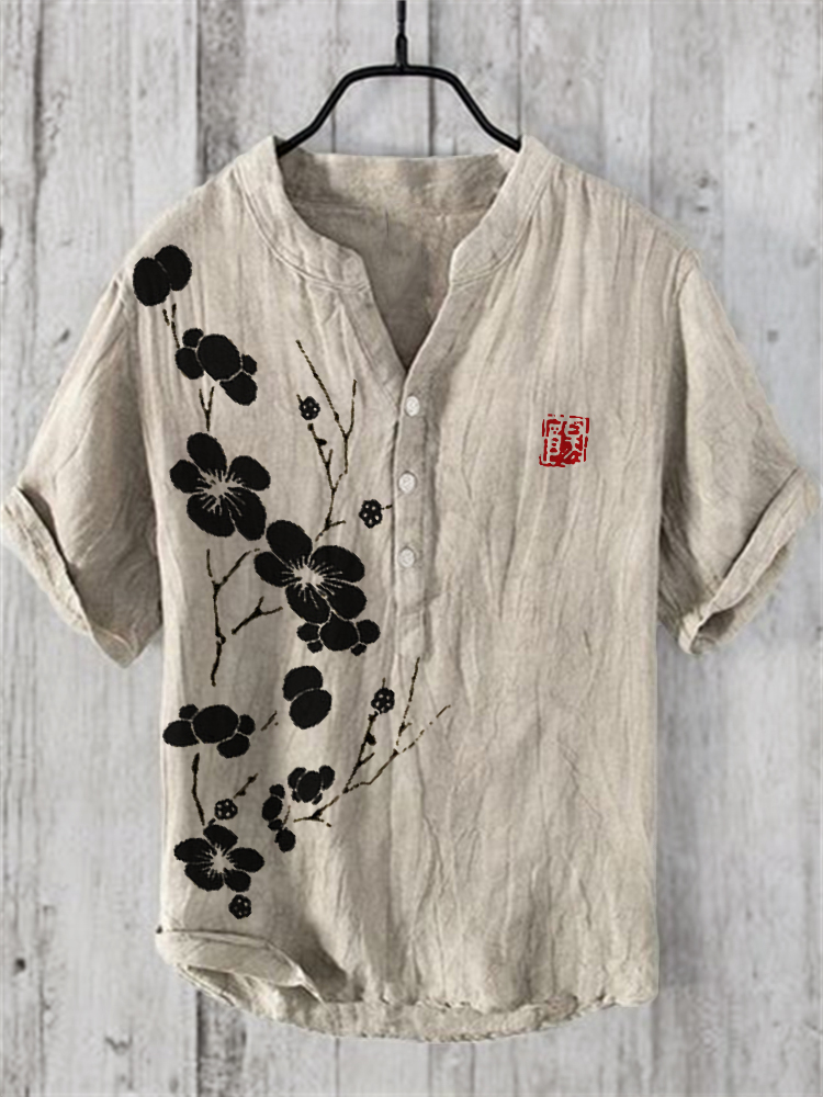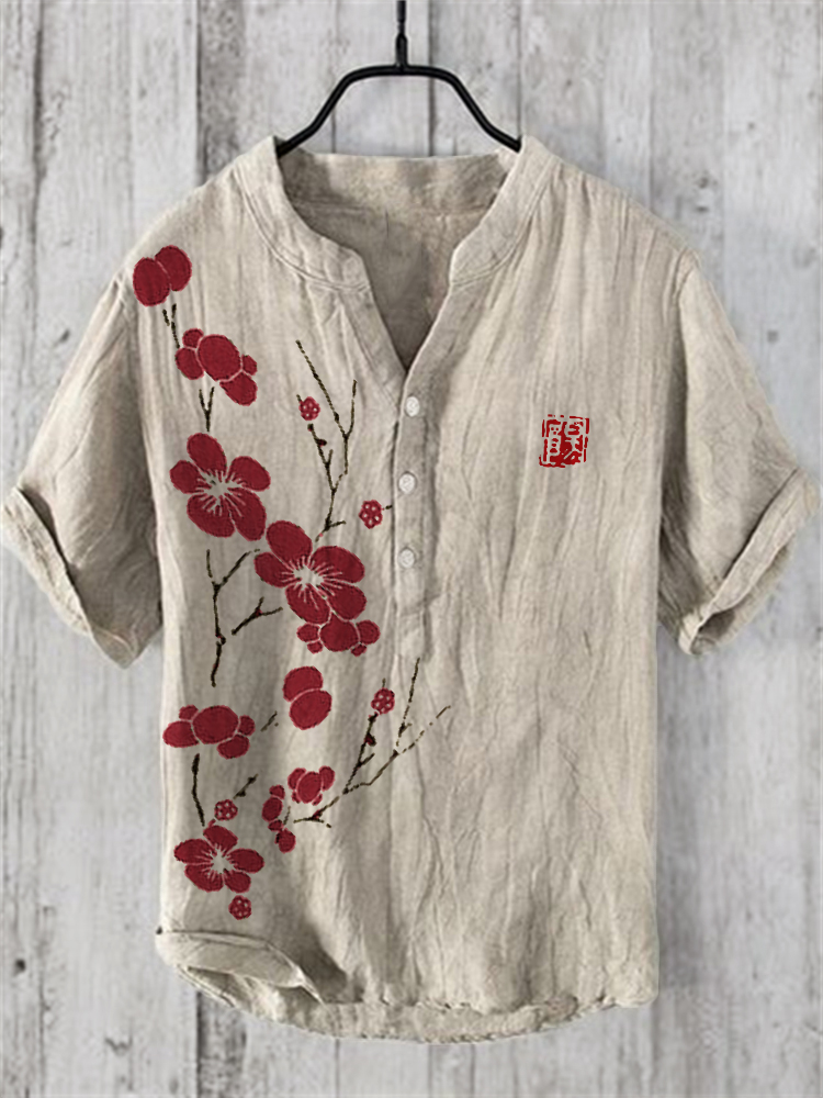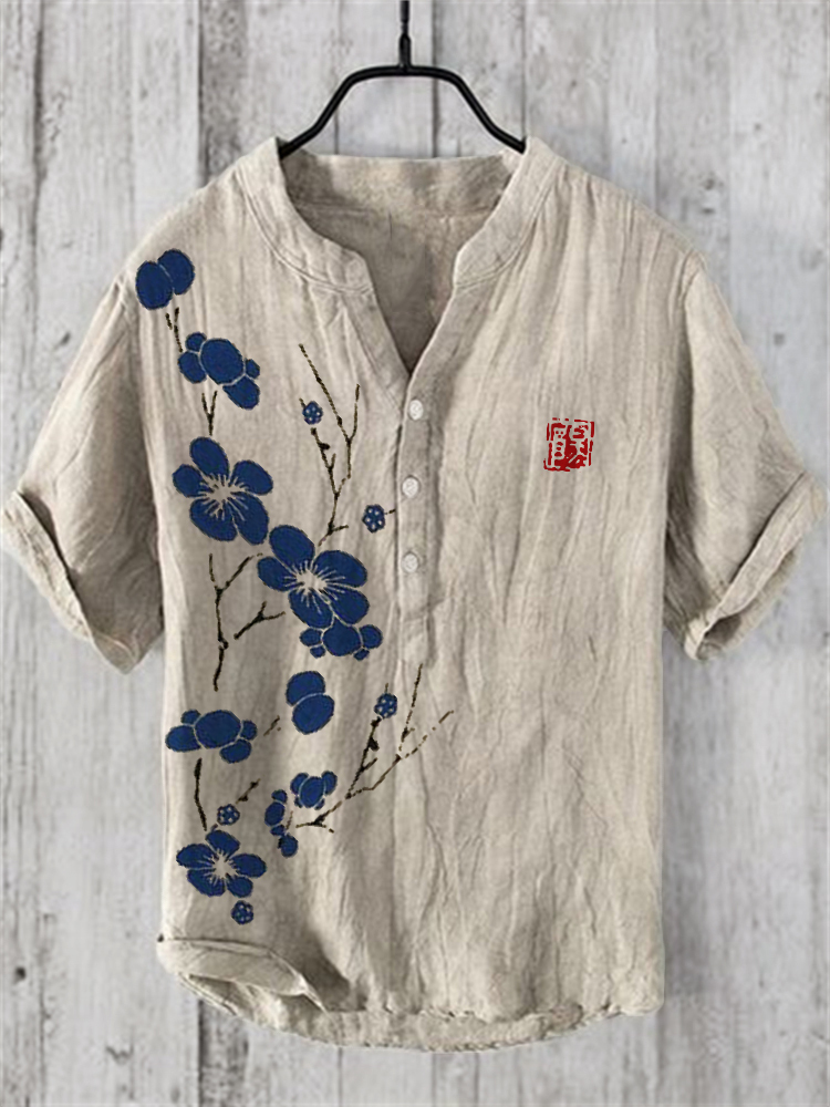 Cherry Blossom Japanese Lino Art Linen Blend Shirt