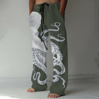 Japanese Art Octopus Graphic Printed Casual Pants