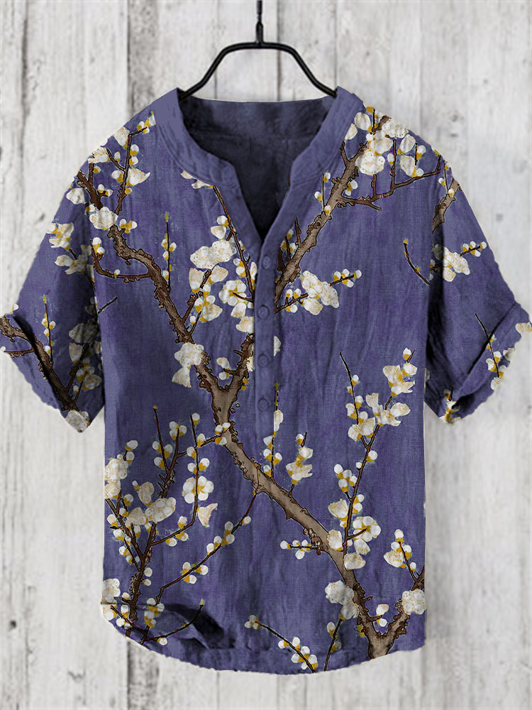 Japanese Ink Painting Of Flower Trees Art Linen Blend