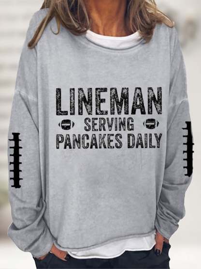 🔥🔥Women's Funny American Football Lineman Serving Pancakes Daily Print Top