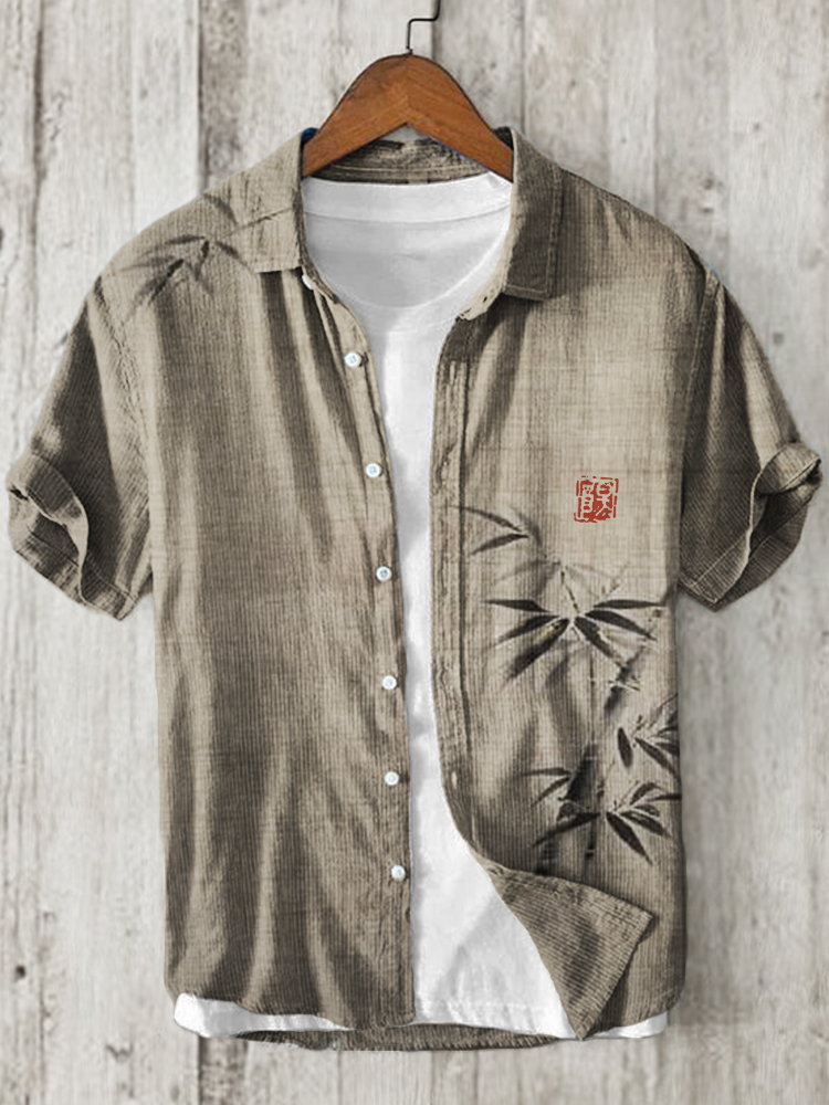 Simple Bamboo Japanese Art Linen Blend Shirt