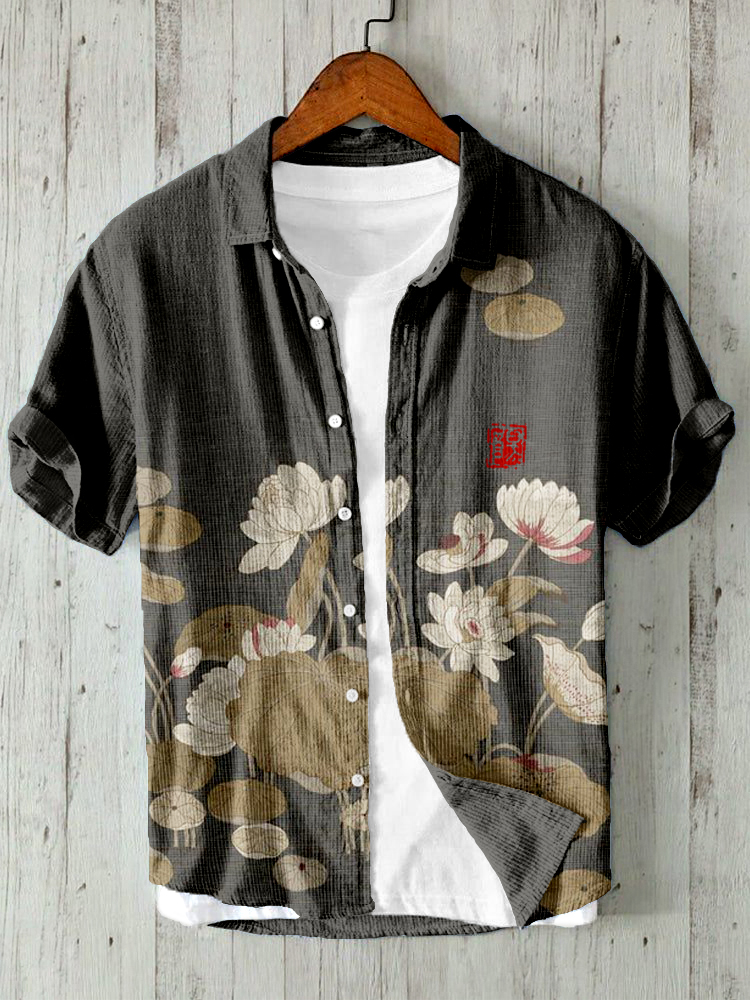 Vintage Lotus Flower Art Linen Blend Comfy Shirt