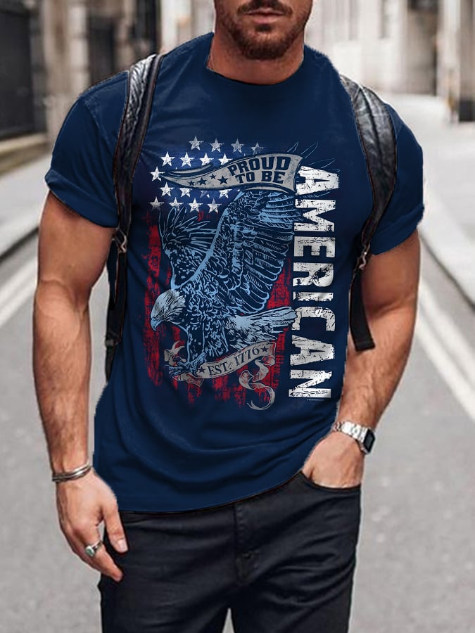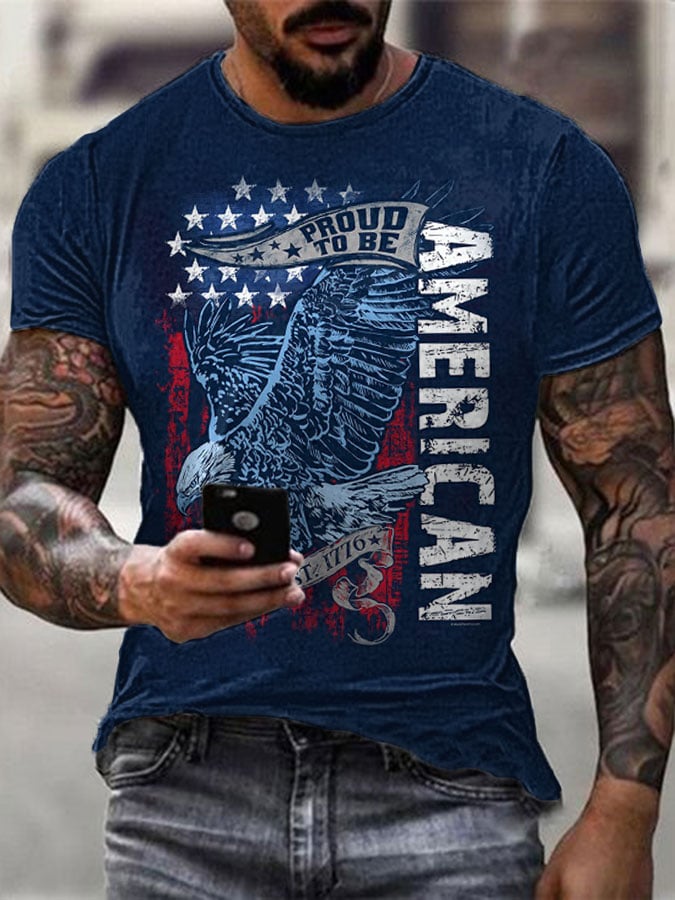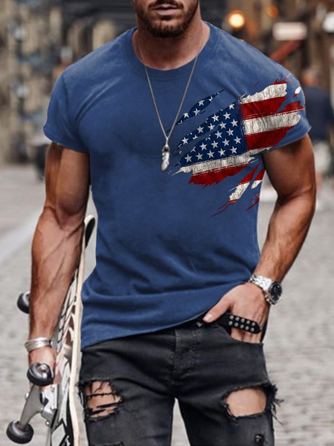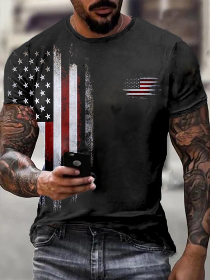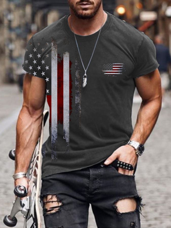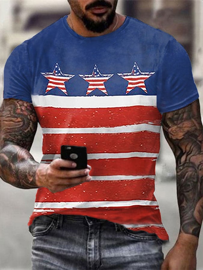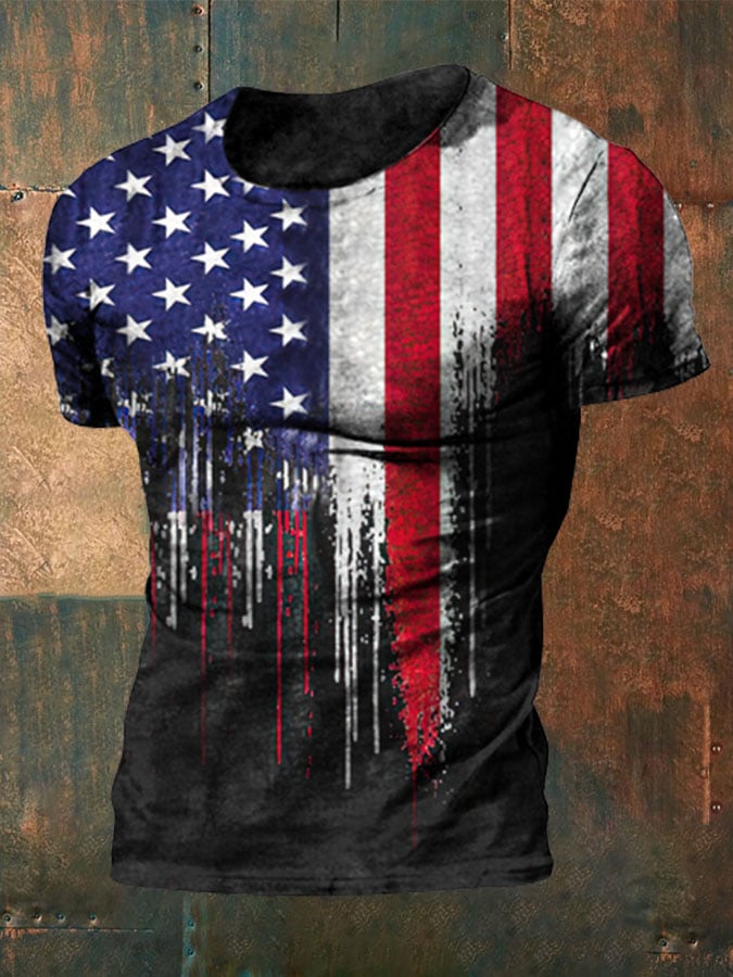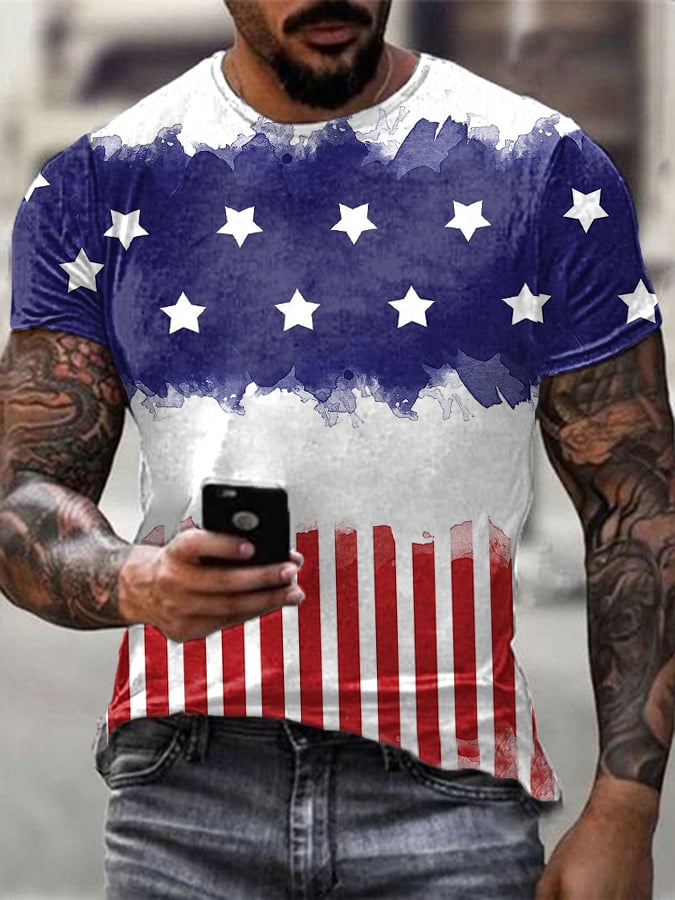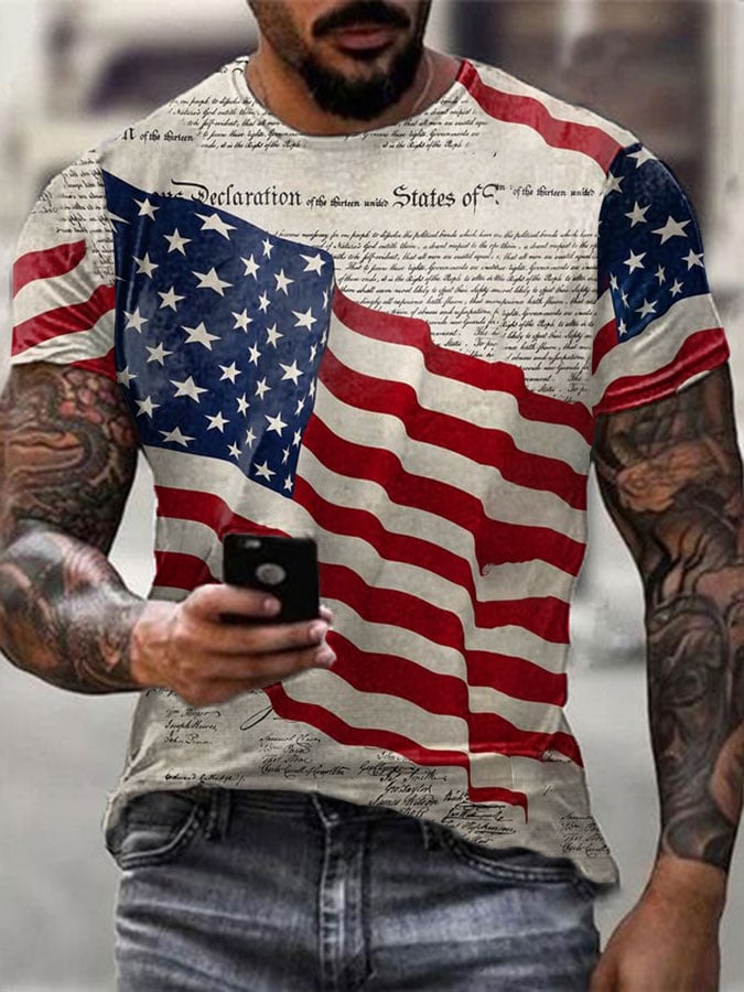 Men's Independence Day American Flag Print Crew Neck T-Shirt
