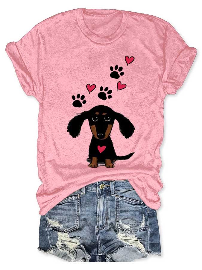 Women'S Dachshund Print V-Neck Short Sleeve T-Shirt