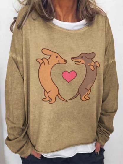Women's Dog Print Long Sleeve Round Neck Sweatshirt