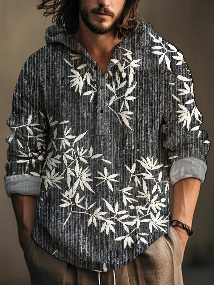 Bamboo Japanese Art Linen Hooded Long Sleeve Shirt