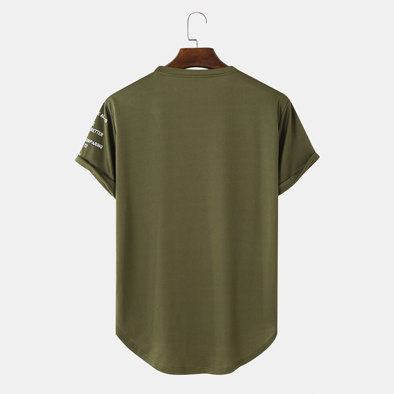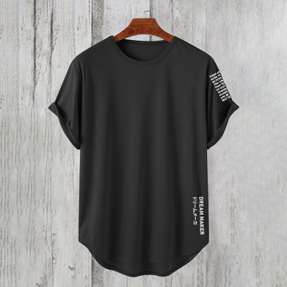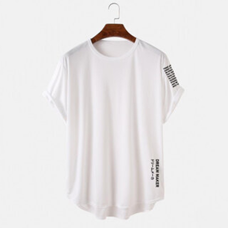 Letter Japanese Print High Low Curved Hem Short Sleeve T-Shirts