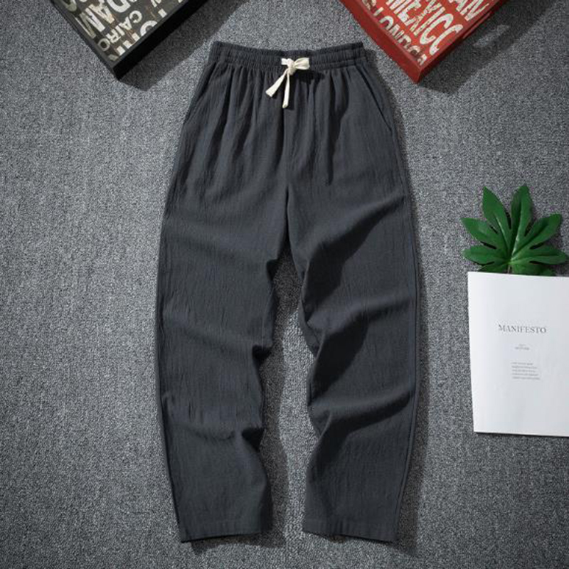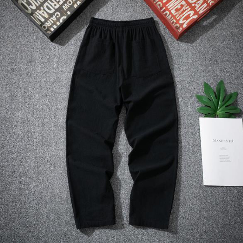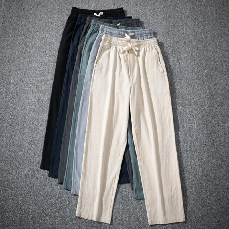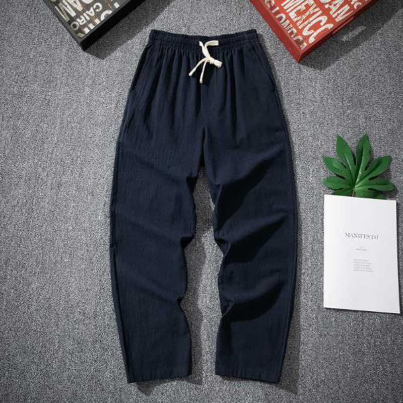 Men's Vintage Elastic Waist Pocket Casual Cotton Linen Pants