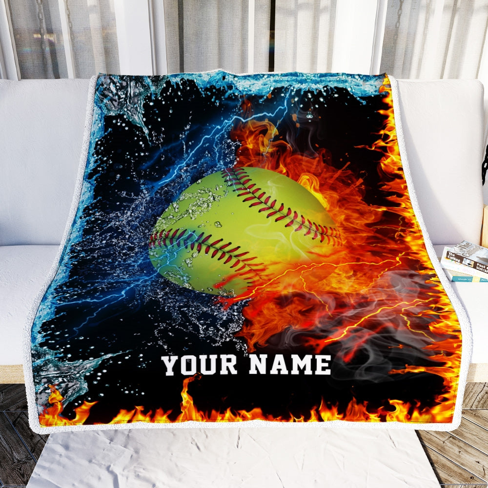 Personalized Fire Softball Blanket For Comfort & Unique|DY07