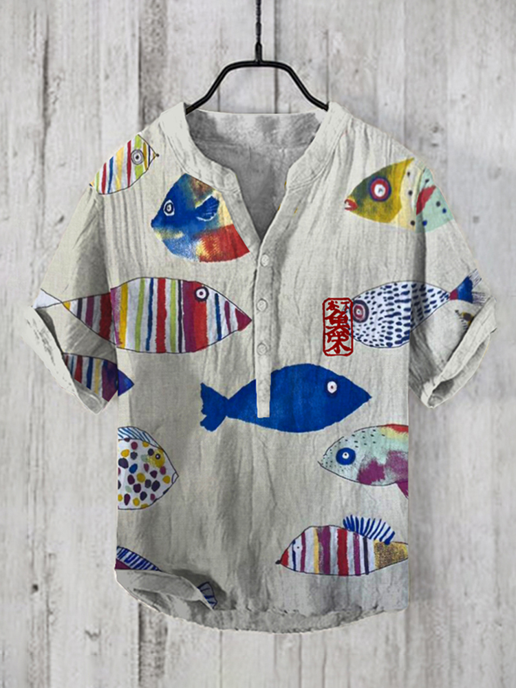 Seas And Oceans Fish Japanese Art Linen Blend Cozy Shirt