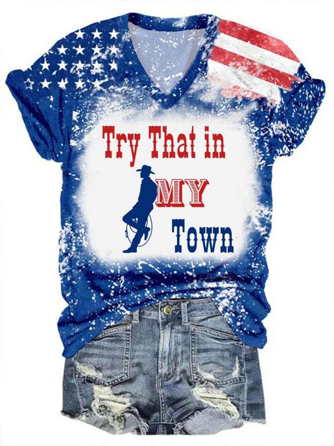 Women's Try That In A Small Town Print V Neck T-Shirt