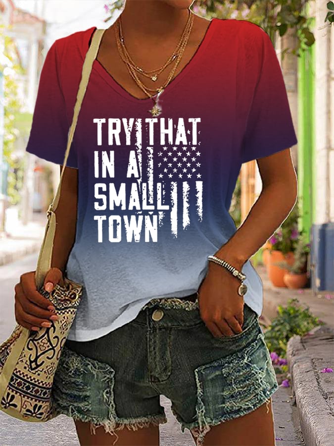 Women's Try That In A Small Town Print V-Neck T-Shirt