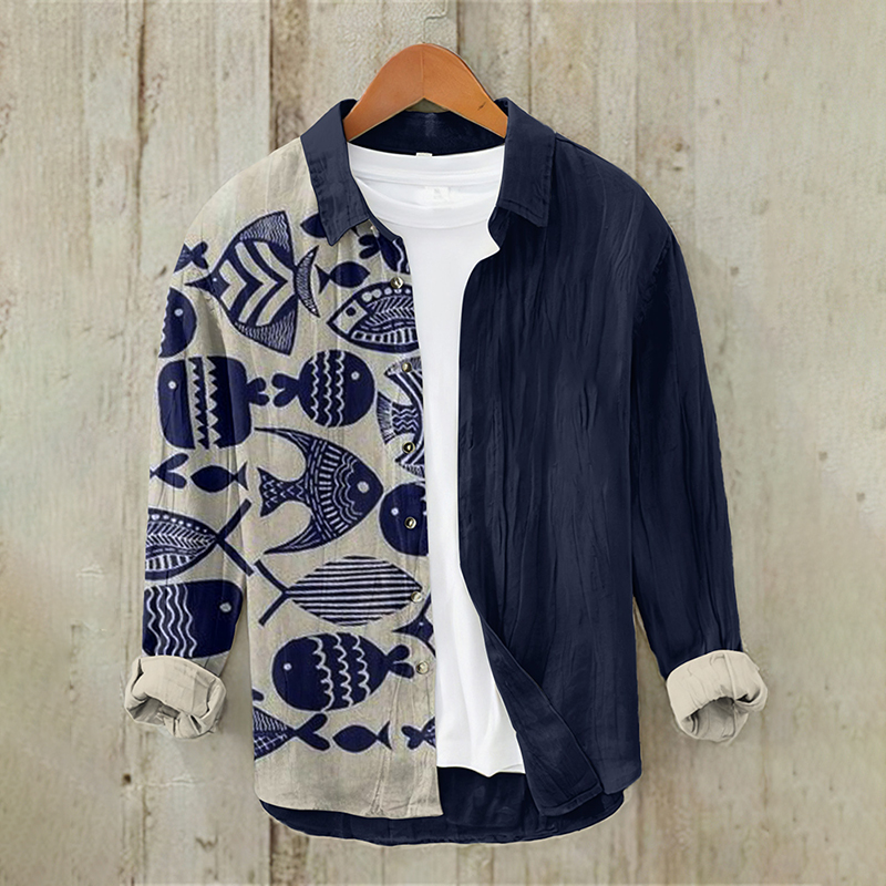 Japanese Art School Fish Button Casual Linen Blend Shirt