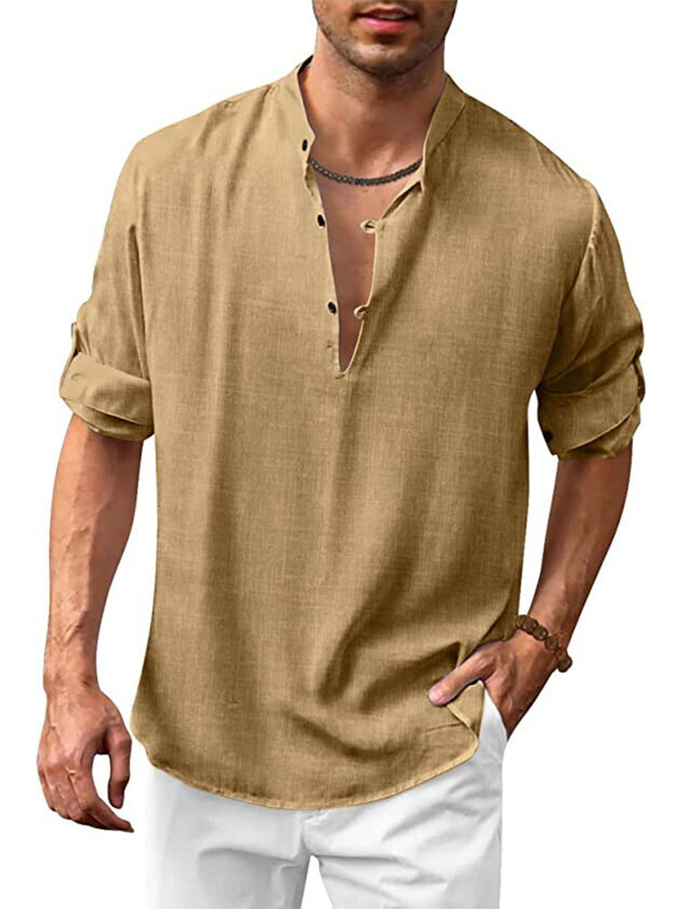 Men's Cotton Linen Casual Hippie Long Sleeve Shirt