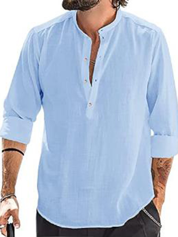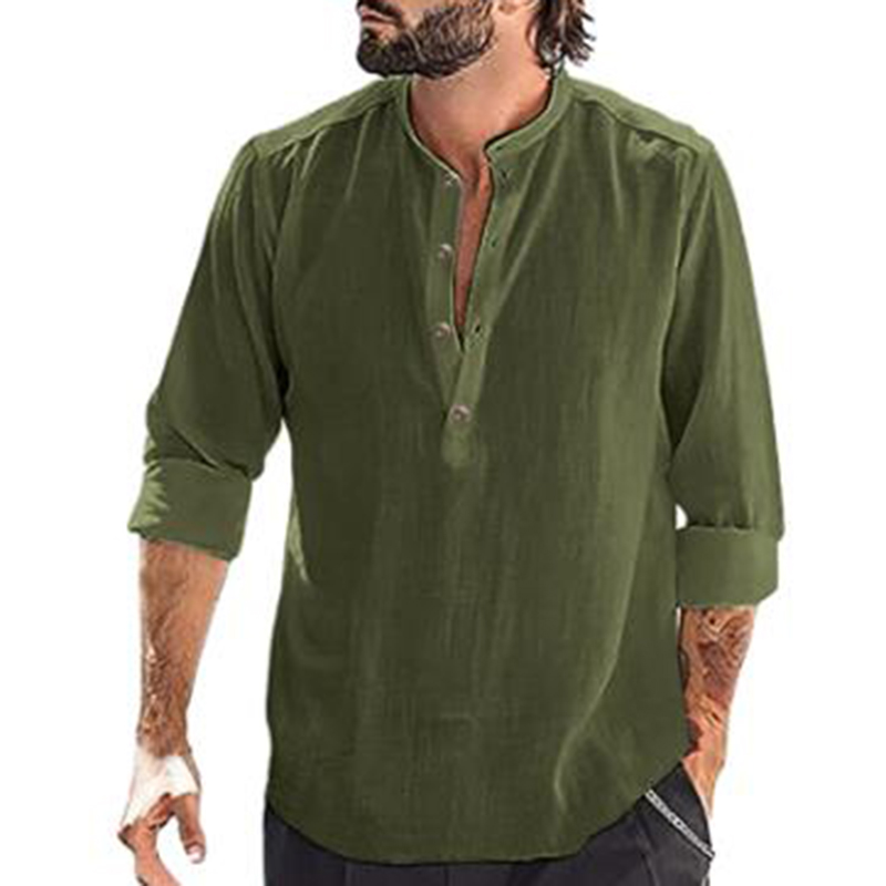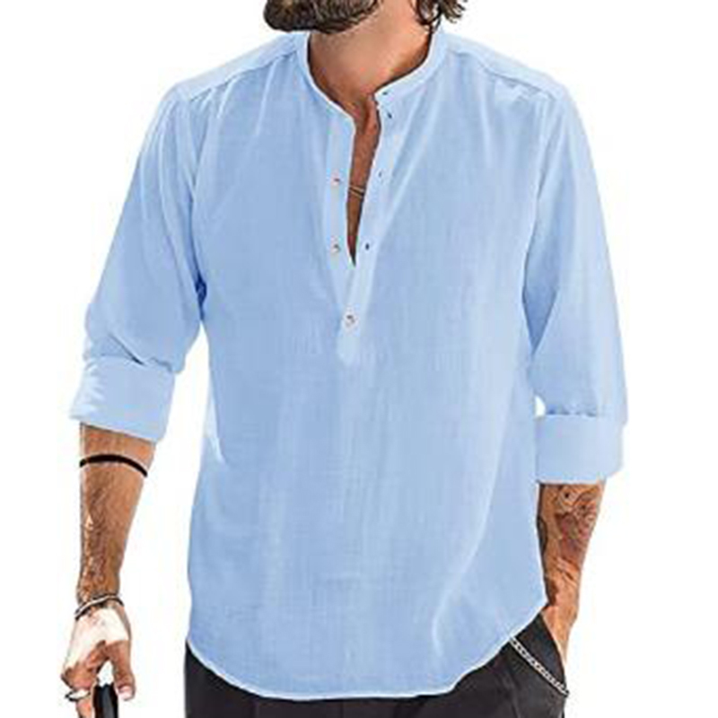 Men'S Vintage Buttoned Casual Linen Blend Shirt