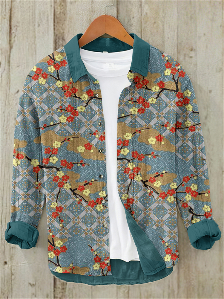 Vintage Sakura Japanese Art Linen Blend Shirt