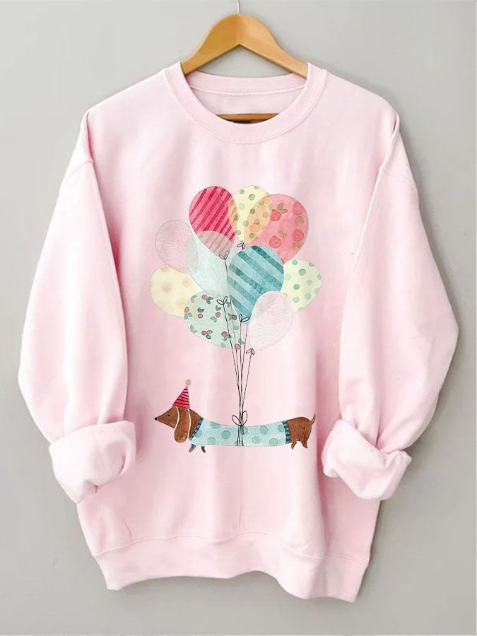 Women's Dog Print Long Sleeve Round Neck Sweatshirt