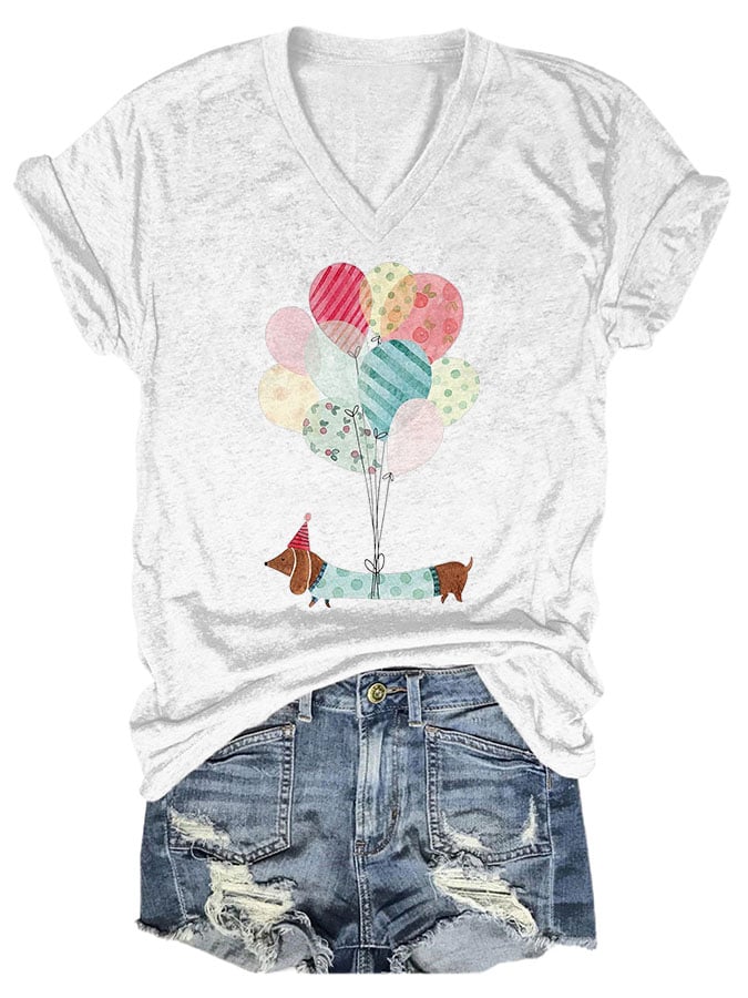 Women's Dog Print V-Neck Short Sleeve T-Shirt