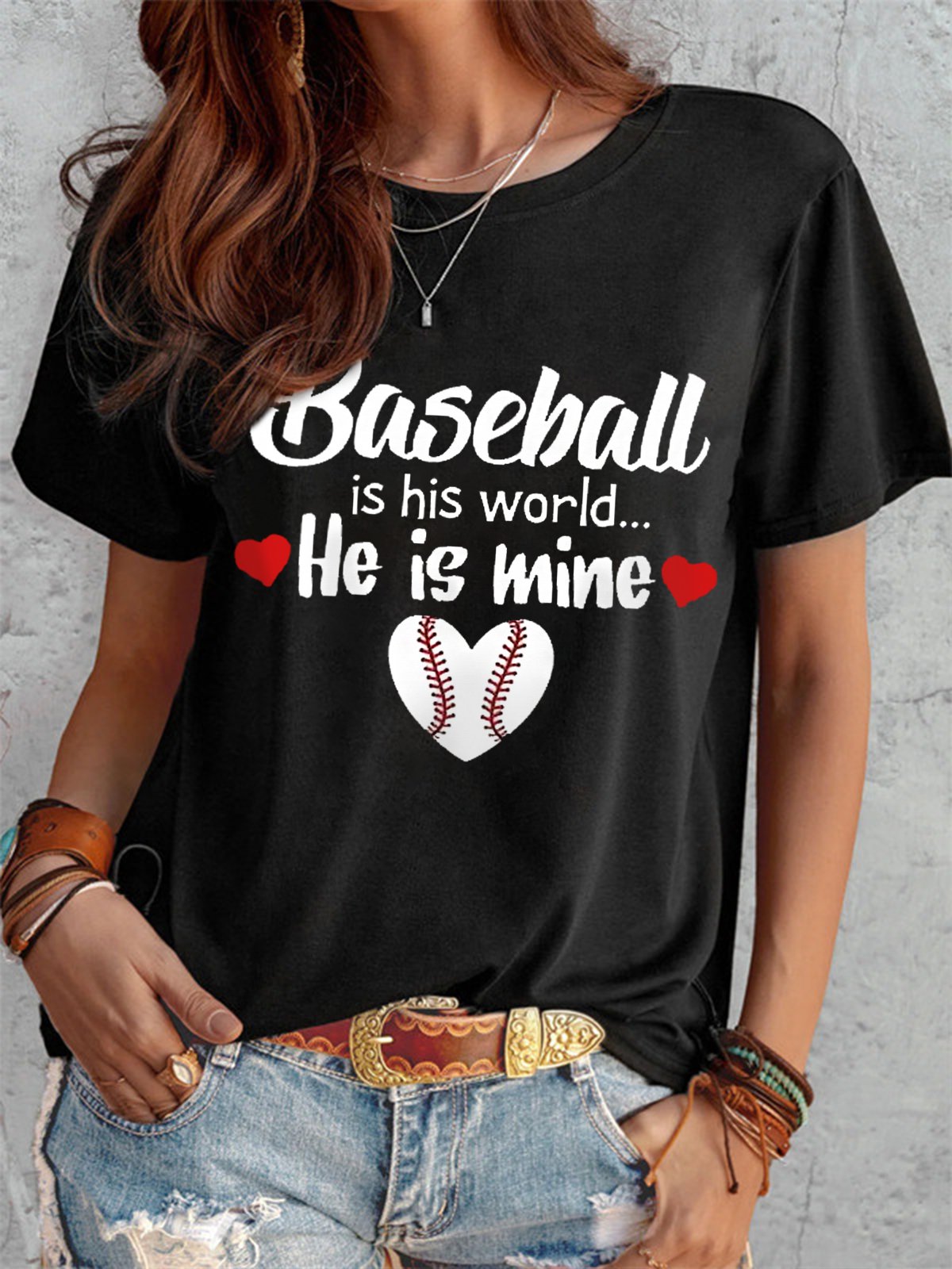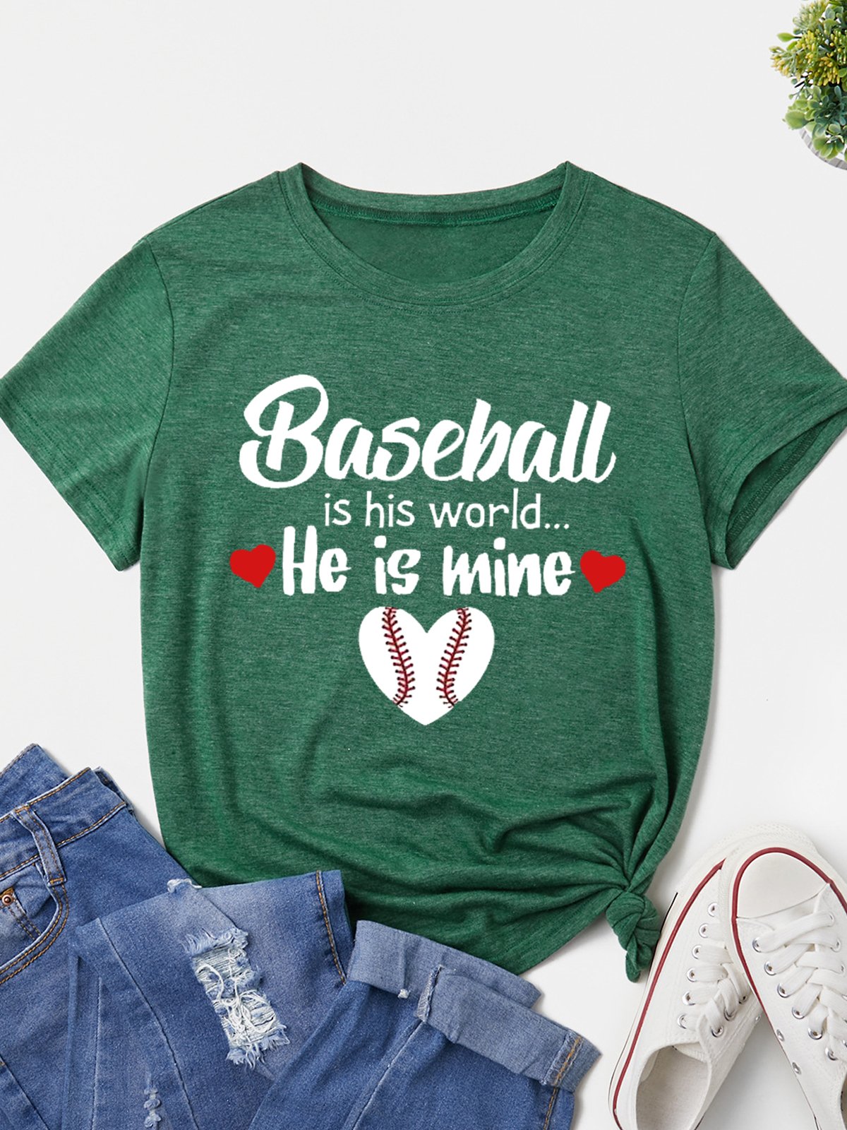 🔥🔥Women's Baseball Is His World He Is Mine Casual Tee