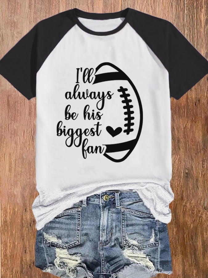 🔥🔥Women's I'll Always Be His Biggest Fan Football Lover Print Raglan Sleeve T-Shirt