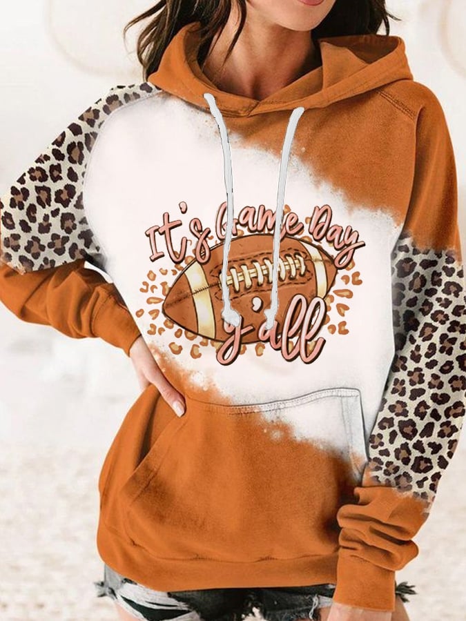 🔥🔥Women's It's Gameday Y'all Leopard Football Print Hoodie