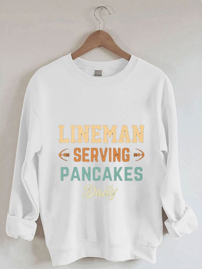 🔥🔥Women's Funny American Football Lineman Serving Pancakes Daily Print Sweatshirt