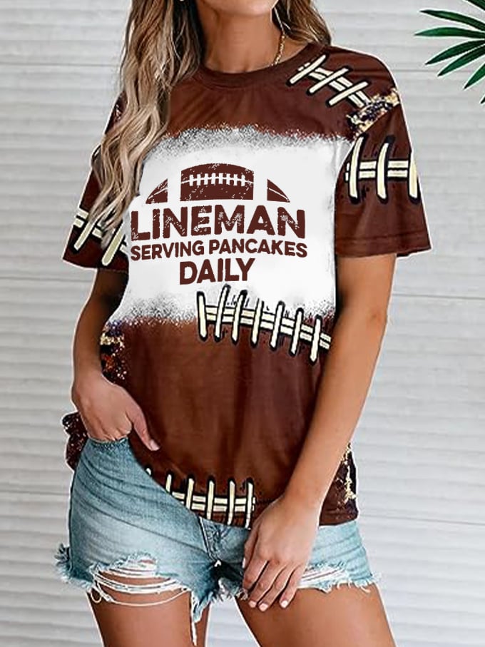 🔥🔥Women's Funny American Football Leopard Lineman Serving Pancakes Daily Print T-Shirt