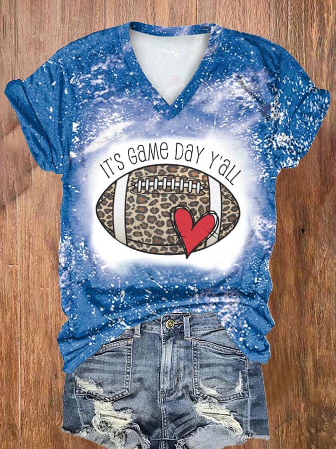 🔥🔥Women's Leopard Football Print V-Neck Tee