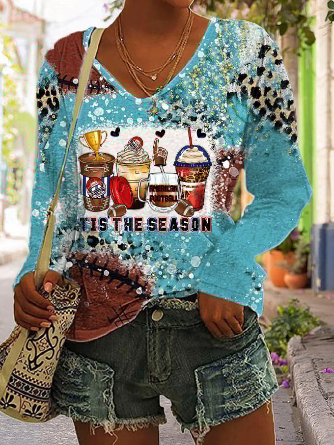 🔥🔥Women's American Football Coffee Tis The Season Leopard Print V-Neck Top