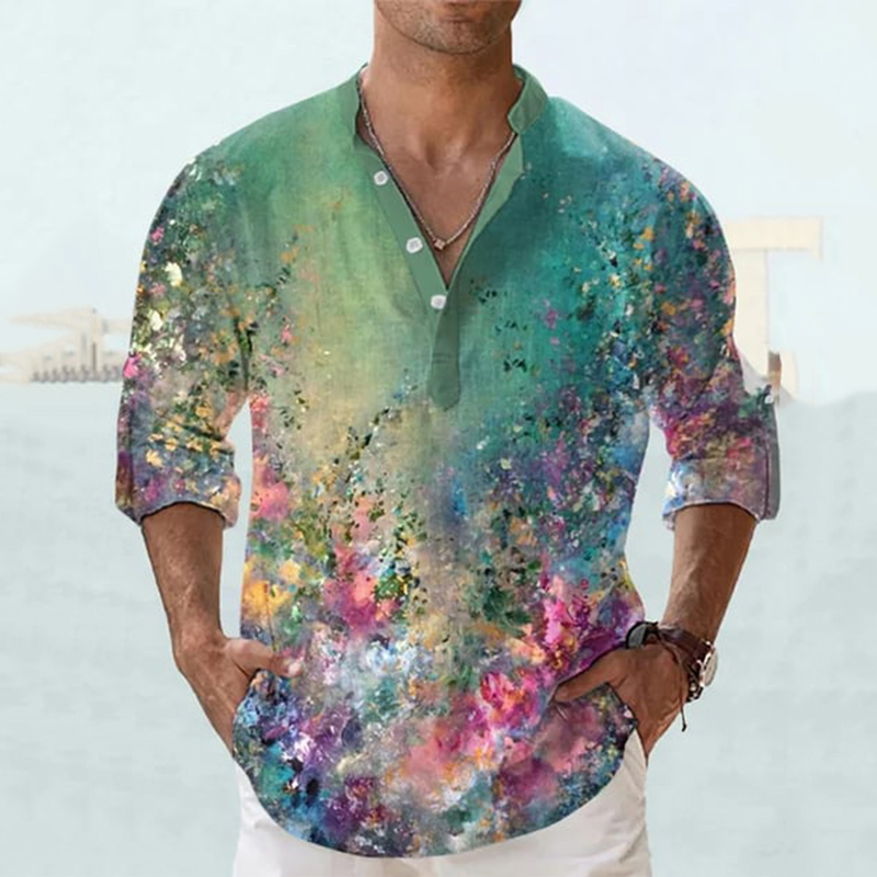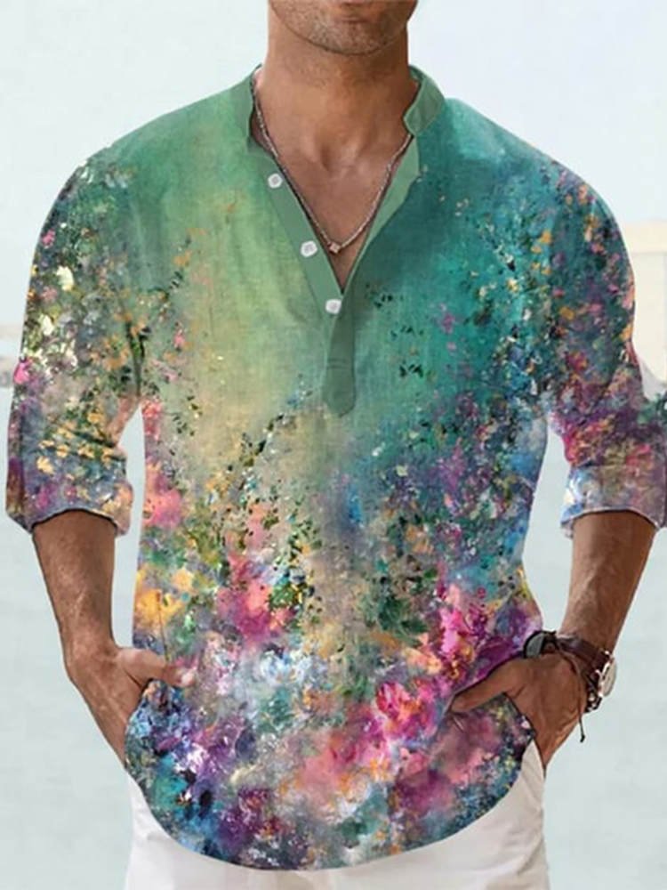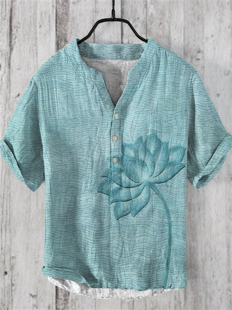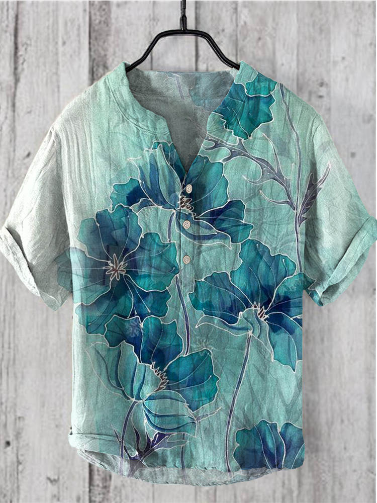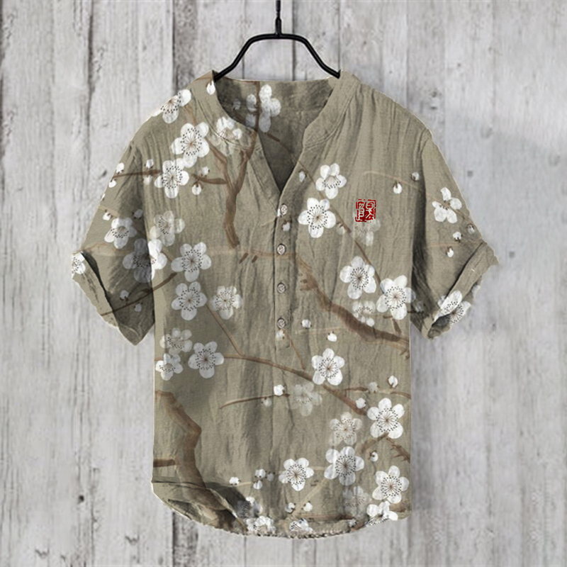 Men's Vintage Japanese Art Blossom Casual Linen Blend Shirt
