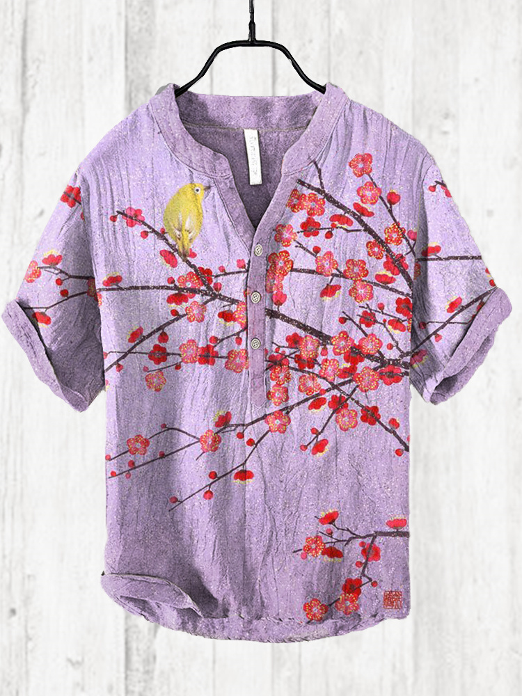 Japanese Plum Blossom Art Casual Linen Blend Shirt